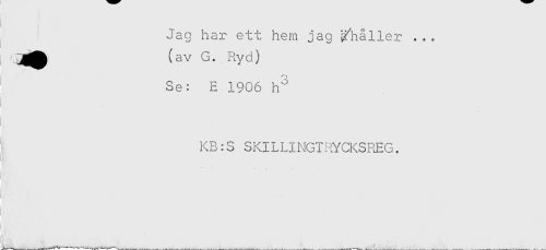 //// Jag har ett hem jag ^håller ... //// Qjjj^ (av G.Ryd) //// Se: E 1906 h^ //// KB:S SKILLINGIRYCKSREG. ////