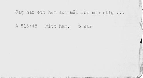 //// Jag har ett hem som mål för min stig ... I //// A 516:45 Mitt hem. 5 str //// i&F! //// n //// $. ////