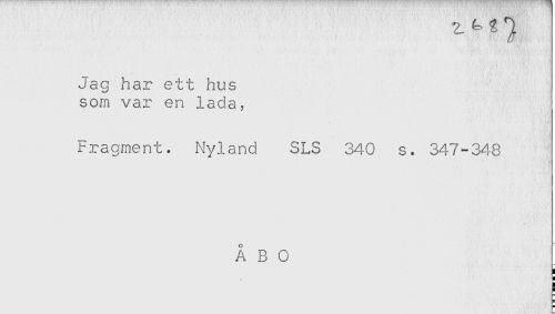 //// Jag har ett hus //// som var en lada, //// Fragment. Nyland SLS 340 s. 347-348 //// n ////
