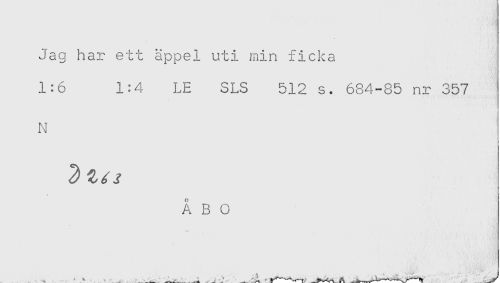 //// Jag har ett äppel uti min ficka //// 1:6 1:4 LE SLS 512 s. 684-85 nr 357 //// N //// / //// ÅBO ////