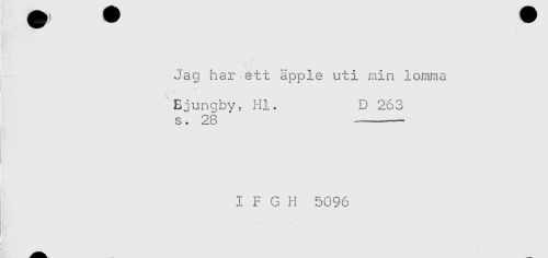 //// Jag har - ett äpple uti min lomma //// Ejungby, Hl. D 263 //// s. 28 - //// . //// I F G H 5096 //// i //// t ////