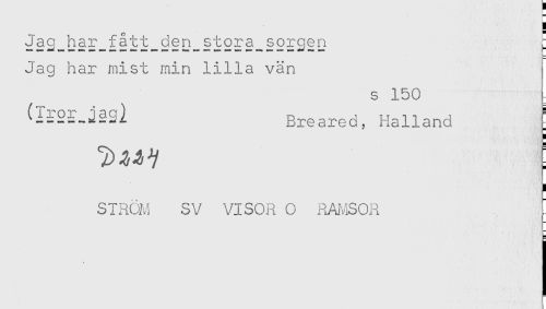 //// Jag har mist min lilla vän //// s 150 - //// (l^orjag^ Breared, Halland ' //// STRÖM SV VISOR O RAMSOR - ////