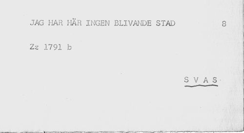 //// JAG HAR HAR INGEN BLIVANDE STAD 8 //// Zz 1791 b //// SV A S //// c ////
