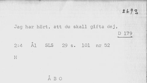 //// Jag har hört, att du skall gifta dej, //// D 179 //// 2:4 Ål SLS 29 s. 101 nr 52 //// N ////