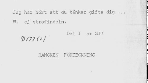 //// Jag har hört att du tänker gifta dig ... I //// W. ej strofindeln. //// Del I nr 317 * //// <3/77^/ = //// H //// RANCKEN FÖRTECKNING ////