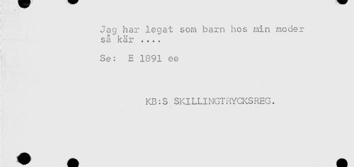 //// Jag har legat som barn hos min moder //// så kär .... //// ! //// Se: E 1891 ee //// KB:S SKILLINGTRYCKSREG. //// !t'. ////