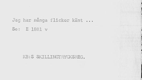 //// Jag har många flickor känt ... //// Se: E 1881 v //// i //// KB:S SKILLINGIRYCKSREG. ////