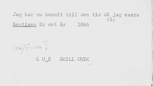 //// Jag har nu hunnit till den tid då jag exera //// r o //// iar //// Sextisex är det år 1866 //// ( //// =1 * ... ' -J //// i' i / //// / //// L U_B SKILL UNIK ////