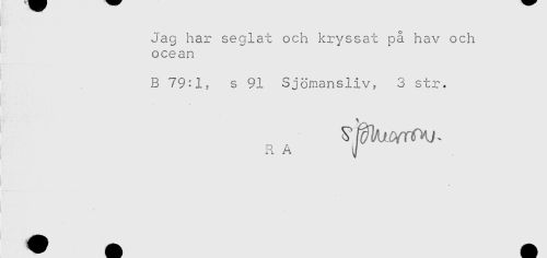 //// Jag har seglat och kryssat på hav och //// ocean //// B 79^1, s 91 Sjömansliv, 3 str. //// RA J ////