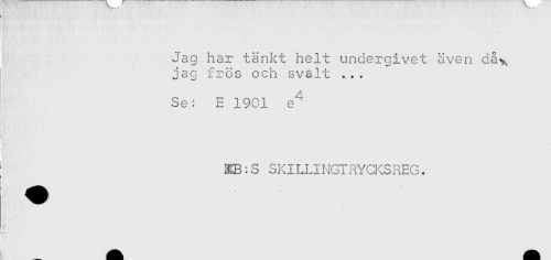 //// - //// Jag har tänkt helt undergivet även då^ //// jag frös och svalt ... //// Se: E 1901 e^* //// ! //// ! s //// EB:S SKILLINGIRYCKSREG. //// ! //// i ////