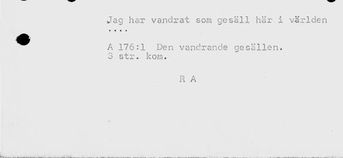 //// Jag har vandrat som gesäll har i världen //// + A * W //// ^^^ A 176:1 Den vandrande gesällen. //// 3 str. kom. //// R A ////