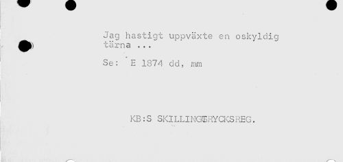 //// ! //// i //// i //// Jag hastigt uppväxte en oskyldig //// ^j}) tärna . . . //// Se: * E 1374 dd, mm //// i . . //// KB:S SKILLINCGRYCKSREG. ////