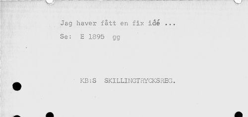 //// Jag haver fått en fix idé ... //// Se: E 1895 gg //// KB:S SKILLINGIRYCKSREG. //// fs-' ////