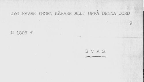 //// JAG HAVER INGEN KÄRARE ALLT UPPA DENNA JORD //// 9 //// N 1808 f //// jHH ; ; ——? //// S V A S //// * ////