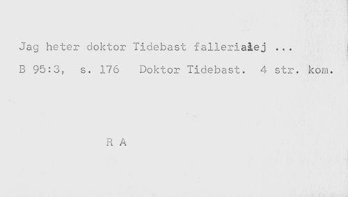 //// Jag heter doktor lidebast falleriaåej ... //// B 95:3, s. 176 Doktor Tidebast. 4 str. kom. //// R A ////