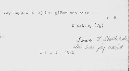 //// Jag hoppas ni ej har glömt sen sist ... //// s. 9 //// Björkäng (Vg) //// I F G H : 4985 ' / //// i ////