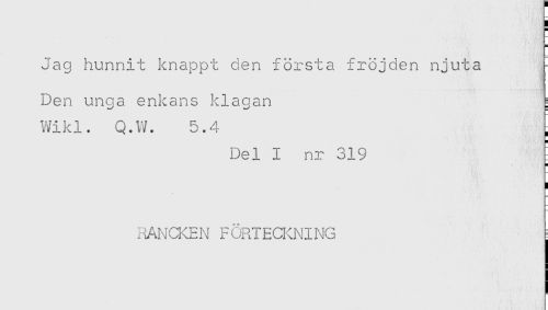 //// H //// Jag hunnit knappt den första fröjden njuta = //// Den unga enkans klagan i //// Wiki. Q.W. 5.4 - //// Del I nr 319 - //// H //// ! //// RANCKEN FÖRTECKNING ^ ////