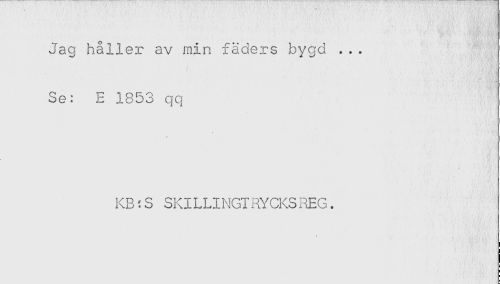//// Jag håller av min fäders bygd ... //// Se: E 1853 qq //// KB:S SKILLINGTRYCKSREG. ////