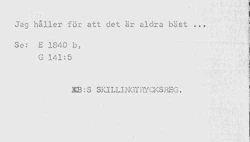 //// ^ ' * //// Jag håller för att det är aldra bäst ... //// Se: E 1840 b, //// G 141:5 //// HB:S SKILLINGIRYCKSREG. ////