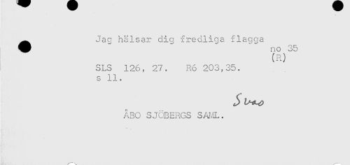 //// ^ Jag hälsar dig fredliga flagga //// SLS 126, 27. R6 203,35. //// s 11. //// ÅBO SJÖBERGS SAML. ////