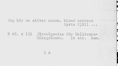 //// Jag här nu sitter ensam, bland nordens //// tysta fjäll ... E //// B 68, s 131 Järnvägsvisa för Gellivara- = //// Riksgränsen. 16 str. kom. //// H //// A j ////