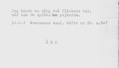 //// Jag hörde en aång två flickors tal? //// när som de språka-^m pojkarna. //// 14:4.? Svenssons saml. häfte nr 24. s.5-7 //// ÅBO ////