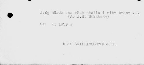//// ^ Ja/g hörde ena röst skalla i mitt bröst ... //// (Av J.E. Wikström) //// Se: Z^ 1859 a //// KB:S SK1LLIKGGRYCKSREG. //// \ ////