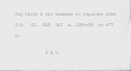 //// y //// Jag hörde i min kammare en ropandes röst //// 2:5. Hl. SLS 367 s. 1254-55 nr 477 //// N. //// ÅBO //// .. A._____' . - -- — . ___. ____- . _____ . - ___— _____— ___ _______r^- ////