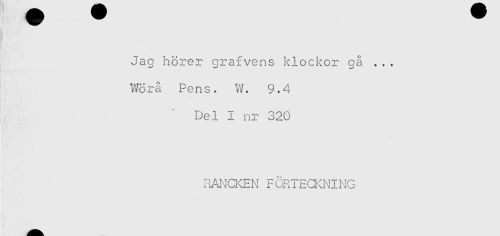 //// Jag hörer grafvens klockor gå ... //// Wörå Pens. W. 9.4 //// Del I nr 320 //// RANCKEN FÖRTECKNING ////