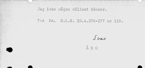 //// ! Jag icke någon vällust känner. //// 7:4 PA. S.L.S. 23.s.276-277 nr 118. ////