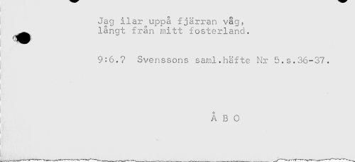 //// ! Jag ilar uppå fjärran våg, //// i ^^ långt från mitt fosterland. //// 9^6.? Svenssons saml.häfte Nr 5.s.36-37. //// I ÅBO //// i ////