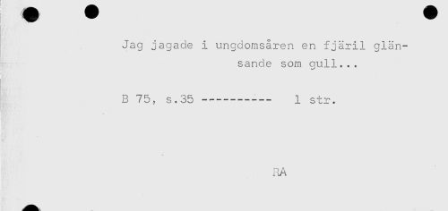 //// Jag jagade i ungdomsåren en fjäril glän- //// sande som gull... //// B 75, s.35----- 1 str. //// ilA ////