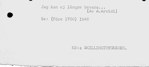 //// Jag kan ej längre bevara... //// ^ (Av A.Arvidi) //// Se: (Före 1700) 1648 //// KB:s SKILLINGIRYCKSREG. ////