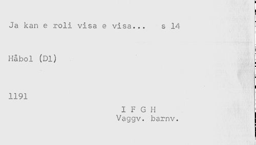 //// Ja kan e roli visa e visa... s 14 ^ //// L //// Håbol (Dl) //// H //// H //// ! //// 1191 //// I F G H : //// Vaggv. barnv. //// B //// r //// i ////