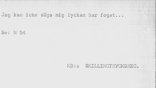 //// Jag kan icke säga mig lyckan har fogat... //// Se: N 54 //// KB:s SKILLINGTRYCKSREG. ////