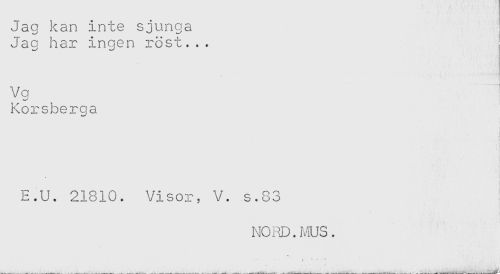 //// Jag kan inte sjunga //// Jag har ingen röst... //// v< //// Korsbergs //// E.U. 21810. Visor, V. s.83 //// NOilD.N!US. //// t " ' " ////