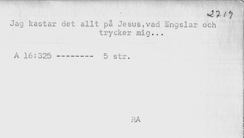 //// Jag kastar det allt på Jesus,vad ängslar och //// trycker mig... //// A 16:325 --- 5 str. //// RA ////