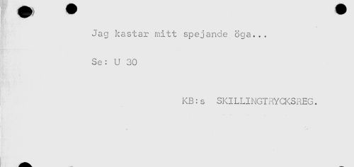 //// Jag kastar mitt spejande öga... //// Se: U 30 //// KB:s SKILLINGTRYCKSREG. //// . * ////