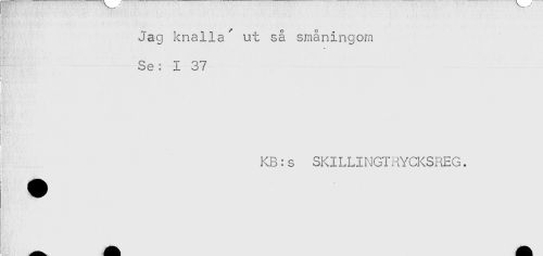 //// Jag knalla' ut så småningom //// Se: I 37 //// i //// i'" <-... //// ) Vy -'t*M " , * //// KB: s SKILLINGTRYCKSFiEG. ////