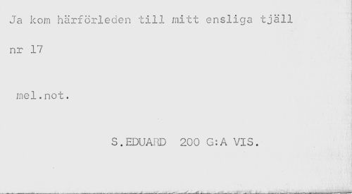 //// Ja kom härförleden till mitt ensliga tjäll //// nr 17 //// mel.not. //// S.EDUAI1D 200 G:A VIS. ////