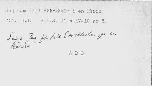 //// Jag kom till St&ckholm i en kärra, //// 7:4. LO. S.L.S. 12 s.17-18 nr 5. //// / ^ (/ ^ <7 //// ÅBO ////