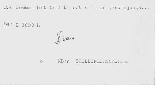 //// Jag kommer hit till Er och vill en visa sjunga... //// Se: E 1883 h //// ö KB:s SKILLINGIRYCKSREG. ////