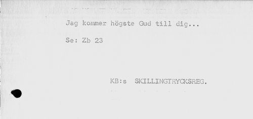 //// * - *- -**- ----- - - ______ , ....... ' ^ -'/...' ' - //// Jag kommei? högste Gud till dig... //// Se: Zb 23 //// j //// i //// i //// i //// i //// t //// i //// 1 //// i //// KB:s SKILLINGIRYCKSREG. //// i //// i ////