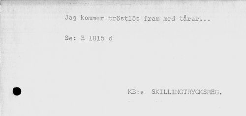 //// / * - . //// Jag kommer tröstlös fram med tårar... //// Se: E 1815 d //// < //// ! - - //// ! //// KB:s SKILLINGTRYCKSREG. //// - - . , ////