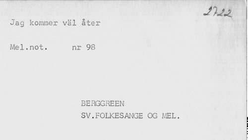 //// Jag kommer väl åter //// Mel.not. nr 98 //// BERGGREEN //// SV.FOLKESANGE OG MEL. , ////