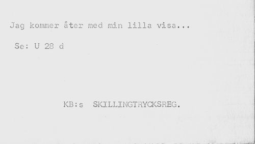 //// < //// Jag kommer åter med min lilla visa... //// Se: U 28 d //// KB:s SKILLINGIRYCKSREG. ////