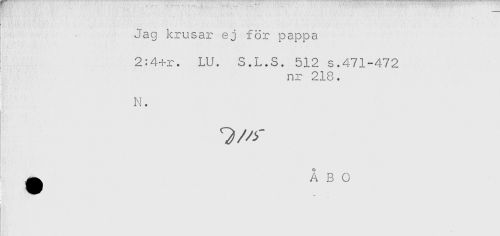 //// Jag krusar ej för pappa //// 2:4+r. LU. S.L.S. 512 s.471-472 //// nr 218. //// N. //// ^ ÅBO ////