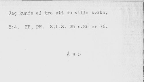 //// Jag kunde ej tro att du ville svika, //// 5:4. EE, PE. S.L.S. 35 s.86 nr 76. //// ÅBO ////