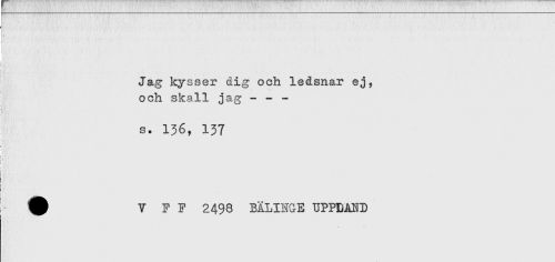 //// ] //// Jag kysser dig och ledsnar ej, //// och skall jag - - - //// f //// S. 136, 137 //// *! //// I //// ) //// < //// < //// ! //// ^ V F F 2498 BÅLINGE UPPBAND ////