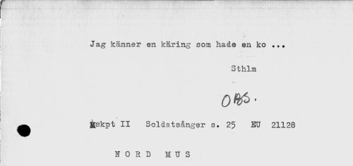 //// Jag känner en käring som hade en ko ... //// ; Sthlm //// . //// ^ Éskpt II Soldatsånger s. 25 EU 21128 //// j //// I //// * ////